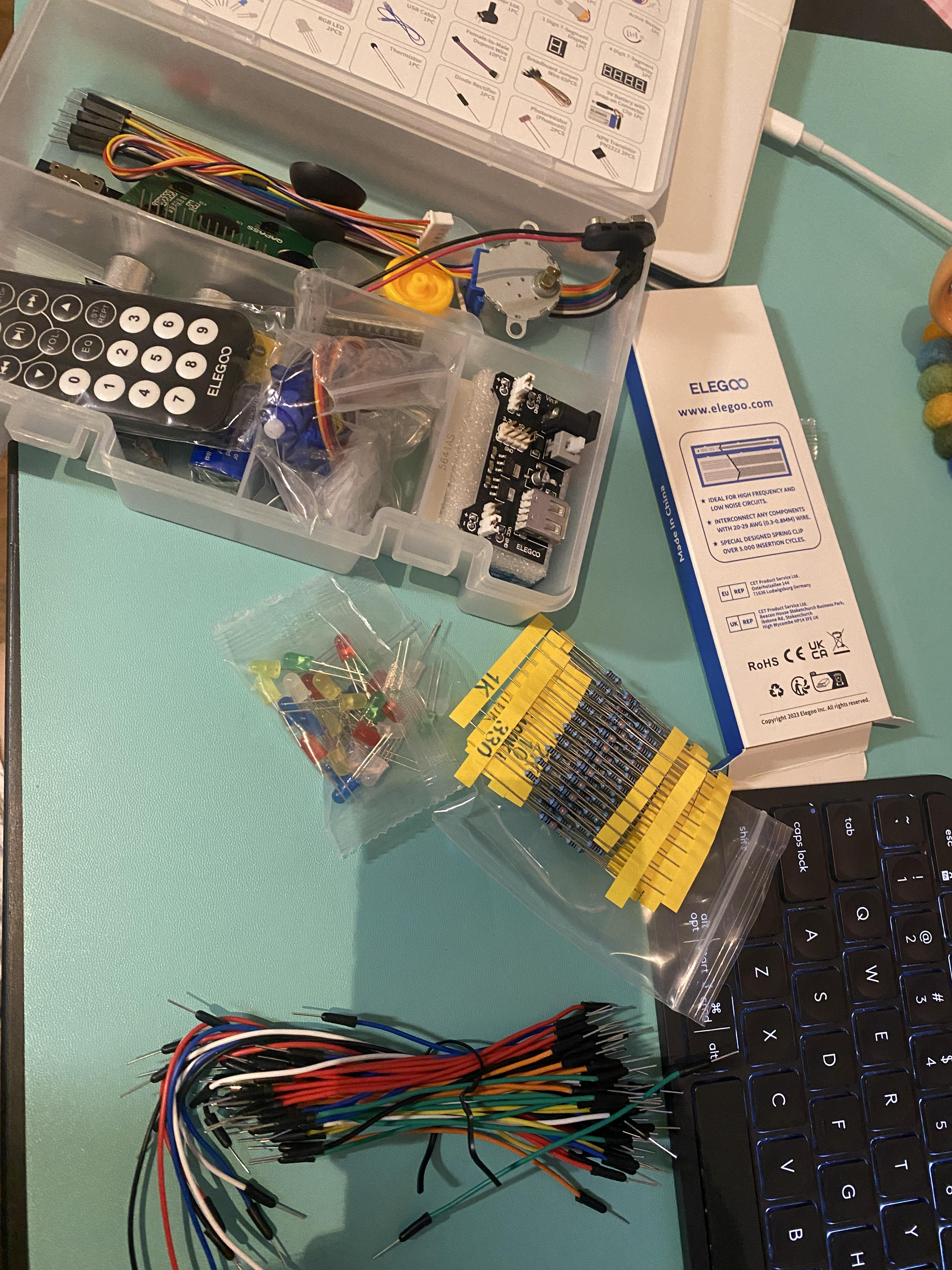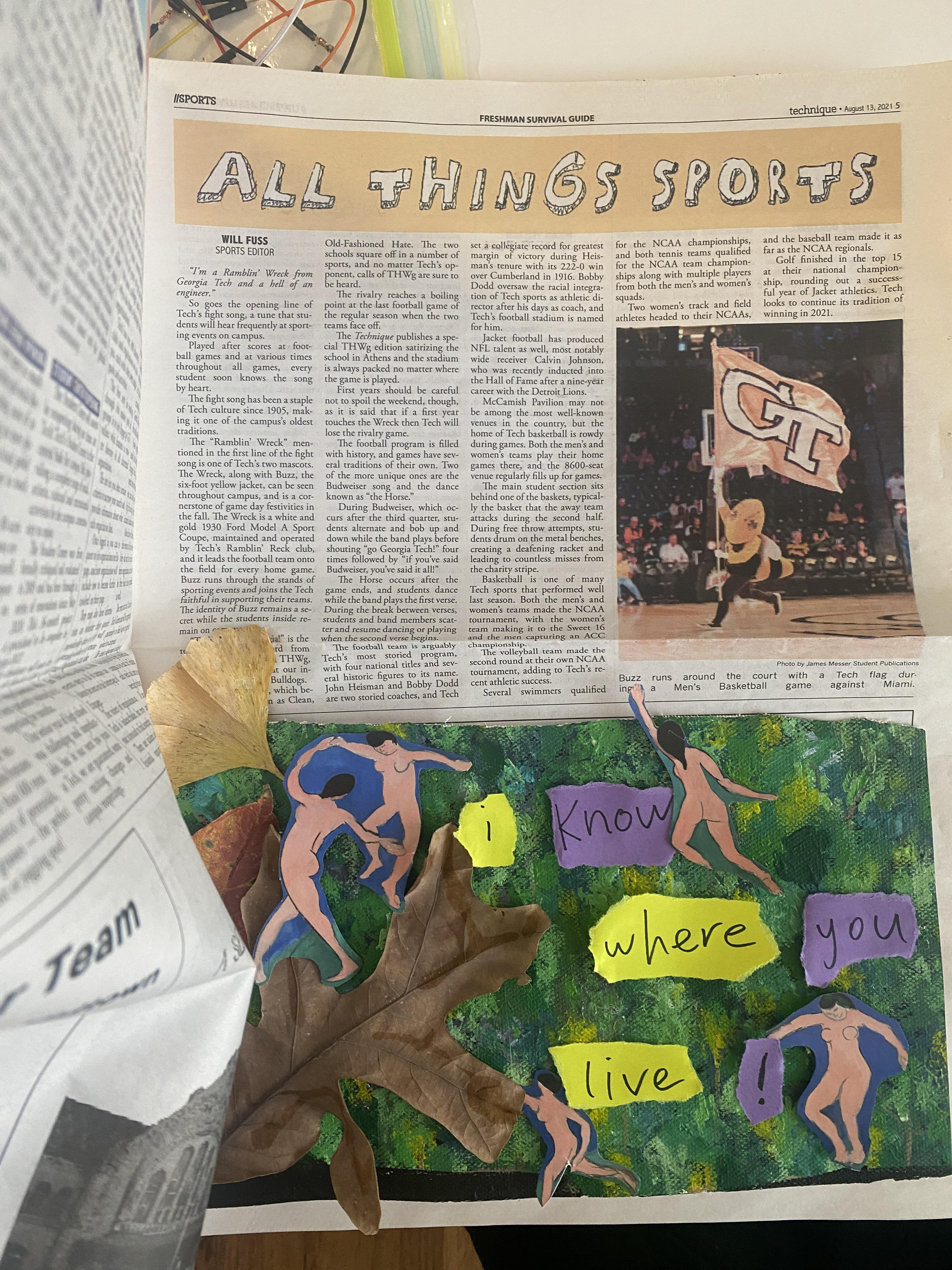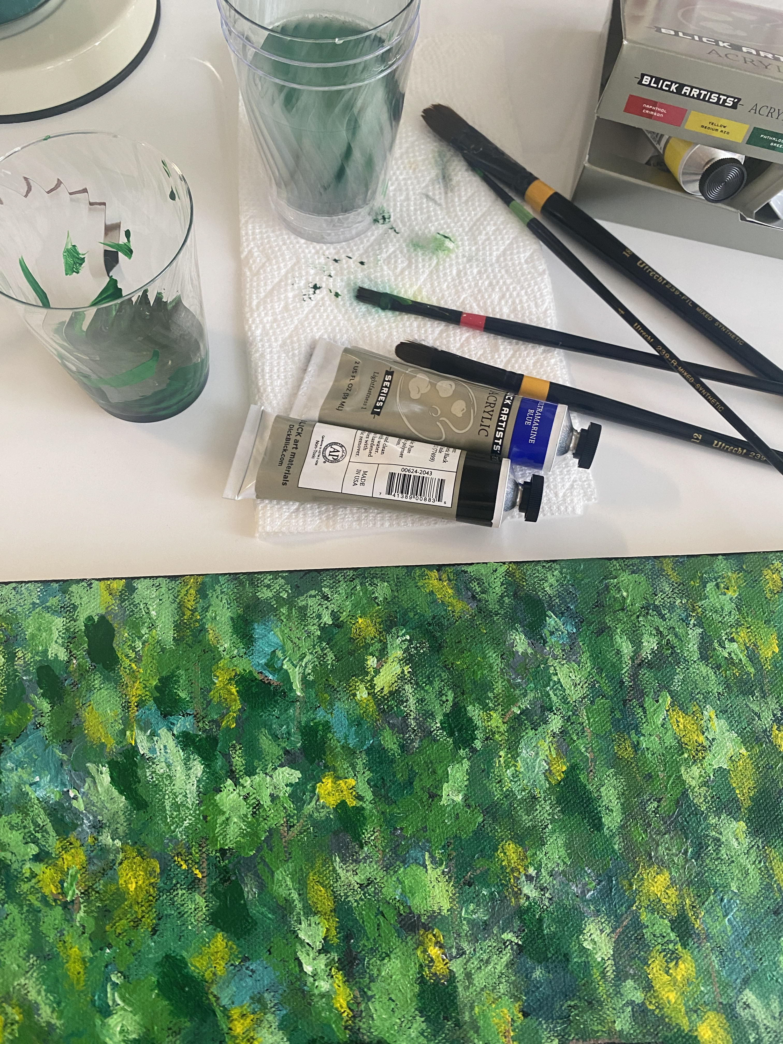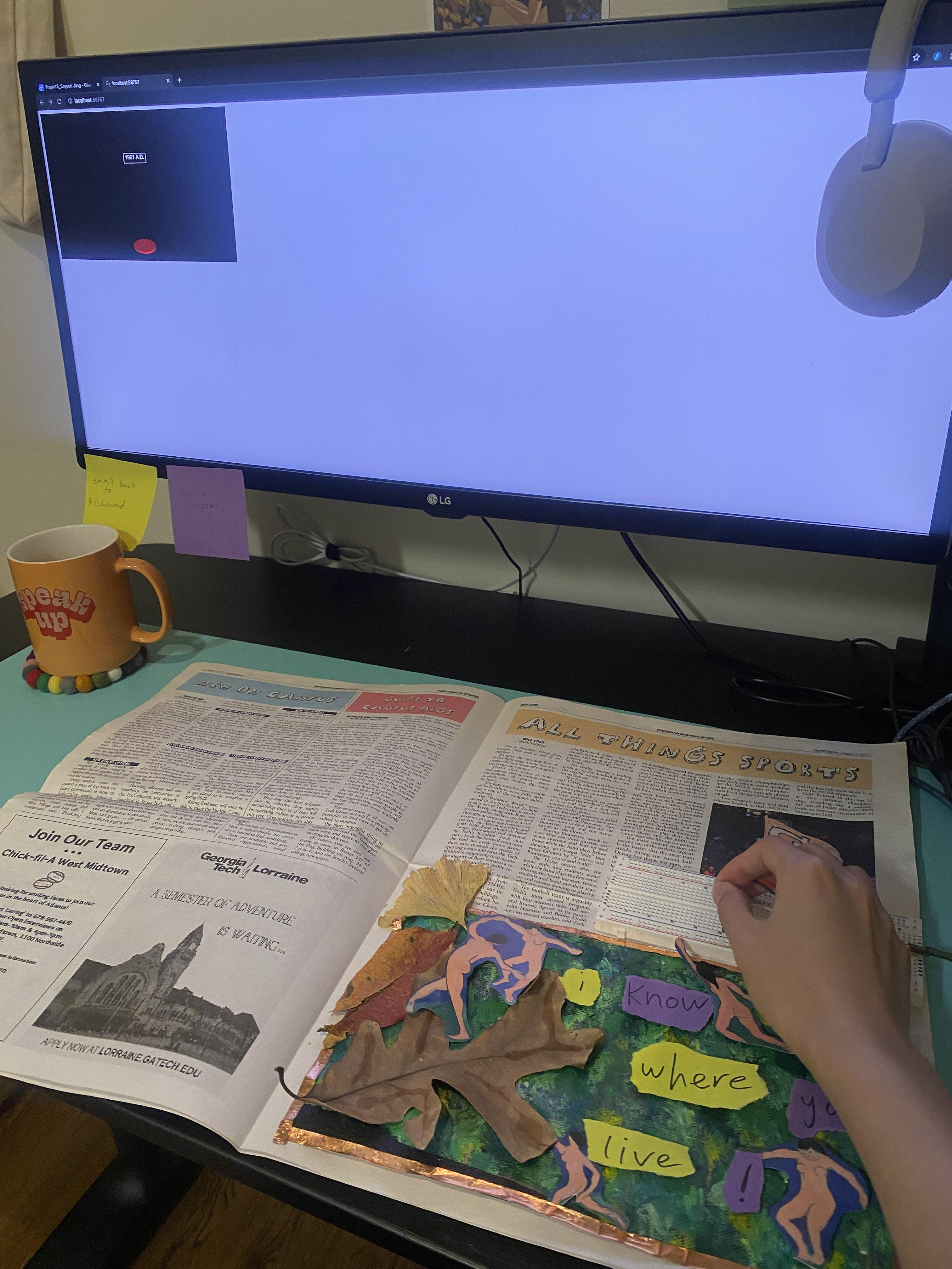 In terms of visual aesthetics, I created a nature-themed canvas painting using acrylic paint (refer to the photos below). Originally, I envisioned attaching the Arduino to either the newspaper or the canvas. However, after numerous trials and errors, I discovered that the potentiometer was too fragile and impractical in such a setup (as depicted in the bottom right image of my prototype). Consequently, I had to pivot to using the breadboard and affixing it to the newspaper.